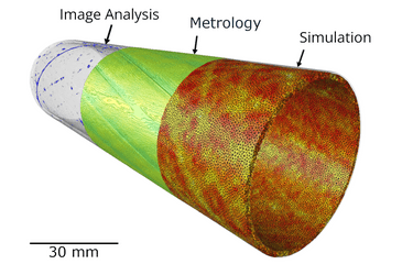 A 3D mesh, with all internal features accurately mapped, is then generated and incorporated into a DigiTwin solution for high-fidelity finite element performance simulation of the as-manufactured part. The key benefits are enhanced quality assurance, highly accurate performance prediction, reduced development cycle times and time-to-market.